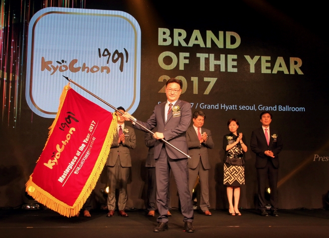 이미지 확대보기교촌치킨이 15년 연속 '대한민국 올해의 브랜드 대상'을 수상했다. 올해 '대한민국 올해의 브랜드 대상'은 산업군별 1차 후보 브랜드 중 온라인, 문자 등으로 진행된 전국 소비자투표와 심의위원회의 최종심의를 거쳐 진행됐다. 교촌은 15년 연속 올해의 브랜드 수상과 함께 5년 연속 '마스터피스 브랜드 특별상'에도 선정됐다. '마스터피스 브랜드 특별상'은 10년 이상 선정된 브랜드에만 수여되는 특별 시상이다.