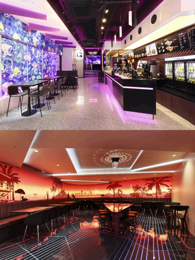 시선을 사로잡는 타코벨 라운지 아트워크는 해변을 형상화해 낮에는 푸른 조명, 밤에는 붉은 조명으로 시간대마다 다른 분위기를 연출했다.