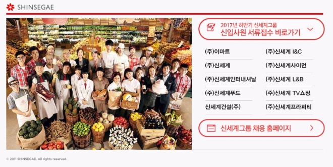 신세계 채용은 그룹 내 총 10개사에서 대졸 신입사원을 모집하며 신세계 채용 홈페이지를 통해 29일까지 서류 접수를 한다. 신입사원을 모집하는 회사는 이마트, 신세계, 신세계푸드, 신세계인터내셔널, 신세계건설, 신세계아이앤씨, 신세계사이먼, 신세계엘앤비, 신세계티비쇼핑, 신세계프라퍼티 10개사다. 그룹 채용의 첫 관문은 서류 심사다.