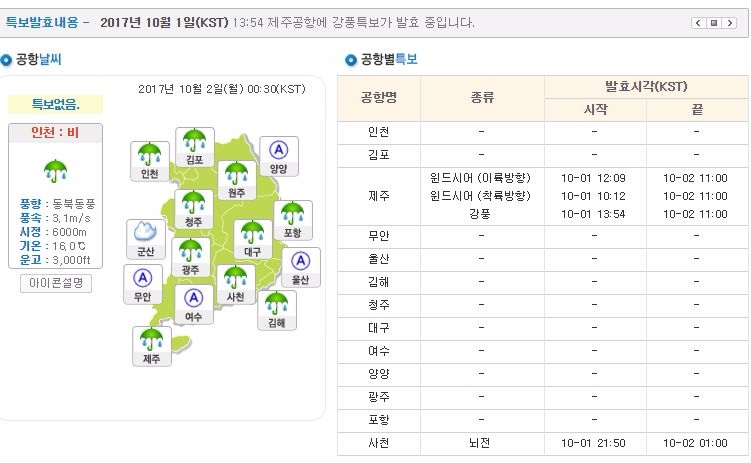 제주공항에는 2일 오전 11시까지 윈드시어‧강풍 내려져 있는 상태로 해당 공항을 이용하는 고객들은 항공사에 연락해 공항 운행 일정에 대해 미리 점검하는 좋다.