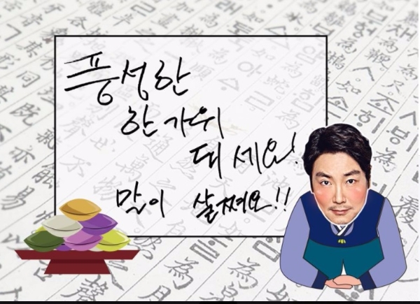 추석 인사말 사진 속 조진웅은 한복을 입은 채 절을 하는 합성 사진까지 붙여 팬들에게 추석 인사를 전했다.