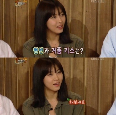 이미지 확대보기이날 방송에서 하지원은 현재 출연중인 MBC '더킹 투하츠'의 이승기와 '냉장고 키스'가 가장 기억에 남는다고 대답해 시선을 끌었다. 이어 하지원은 지난해 호흡을 맞춘 SBS '시크릿가든'에서 현빈과의 '거품 키스'도 인상적이었다고 털어놨다.