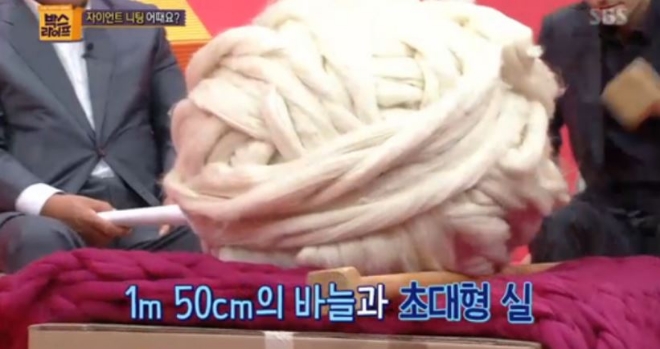 이미지 확대보기9일 오후 방송된 SBS 스타 강제후기 리뷰쇼 '박스라이프'에서 가수 윤종신 아내 전미라가 거대한 뜨개질 '자이언트 니팅'을 접하는 모습이 공개해 화제를 모았다.
