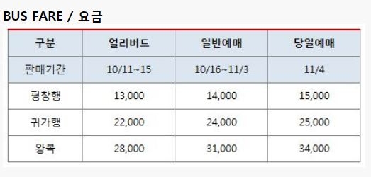 한편 이번 콘서트는 평창공연 전용 셔틀버스가 운영된다. 공연을 마친 후 귀가편이 걱정된다면 미리 예약하는 것이 좋다.