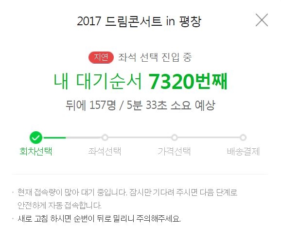 이미지 확대보기멜론티켓이 '2017 드림콘서트 in 평창' 예매오픈을 하자마자 접속자가 폭주했다.