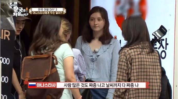 이미지 확대보기12일 방송된 MBC 에브리원 예능 프로그램 ‘어서와 한국은 처음이지“에서 스웨틀라나와 친구들이 한국 여행 3일째에 멤버 아나스타샤의 짜증 폭발에 촬영이 잠시 중단됐다.