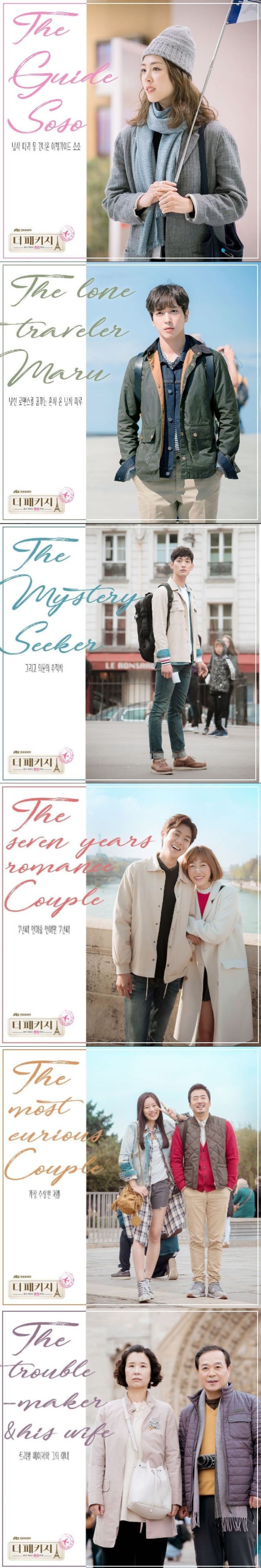 이미지 확대보기그 가운데 JTBC 금토/금요/주말드라마 ‘더 패키지’는 JTBC드라마 SNS를 통해 등장인물 윤소소(이연희 분), 산마루(정용화 분), 김경재(최우식 분) & 한소란(하시은 분), 정연성(류승수 분) & 나현(박유나 분), 오갑수(정규슈 분) & 한복자(이지현 분), 의문의 남자(윤박 분)이 어떤 사연으로 프랑스까지 오게 됐는지 사연을 공개해 눈길을 끈다.