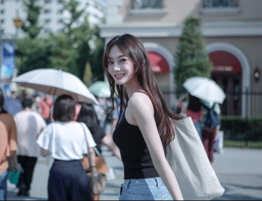 최유솔은 지난 9월 오사카에서 찍은 사진 속에서 청바지에 검은 나시티를 매치했다. 맑게 웃는 모습은 청순하면서도 시원한 의상은 섹시한 느낌을 주기도 했다.
