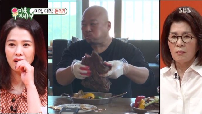이미지 확대보기15일 방송된 SBS '미운우리새끼'에서 박수홍과 윤정수가 돈스파이크의 집에 놀러 갔다. 돈스파이크는 방문한 손님들을 위해 색다른 요리를 준비했다. 요리의 주인공은 큰 고기 두 덩이.