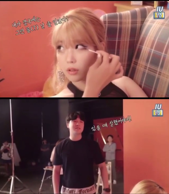 공개된 영상에서 아이유는 노란 머리와 진한 화장으로 파격적인 모습을 선보였다. 섹시하게 보이는 모습을 하고 아이유는 매니저 정한터와 장난을 쳤다.
