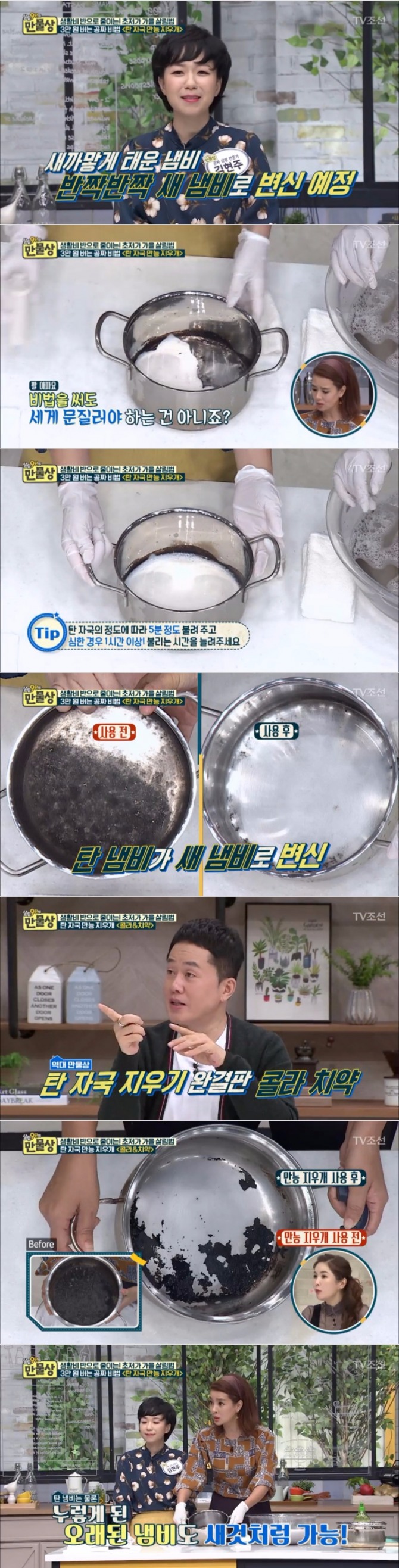 이미지 확대보기15일 밤 방송된 TV조선 '살림9단의 만물상'에서는 김현주씨가 출연, 숯덩이처럼 탄 냄비를 콜라와 치약을 이용해 깨끗하게 만들어주는 방법을 소개해 화제를 모았다.
