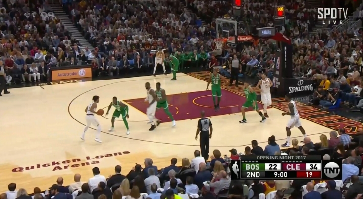 이미지 확대보기NBA(미국프로농구) 2017-2018시즌 클리블랜드와 보스턴 경기에서 르브론을 앞세운 클리블랜드가 2쿼터 10점 이상 리드하고 있다.