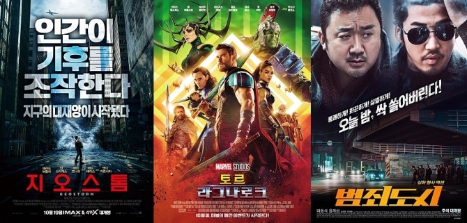 한편 10월 19일 영화진흥위원회 자료 기준, 개봉 2일차 영화 ‘지오스톰 (Geostorm, 2017 / 12세 관람가)’은 액션, SF, 스릴러 장르의 미국영화로 8만 9271명의 관객을 모았으며 같은 날 개봉한 드라마 장르의 영화 ‘대장 김창수 (MAN OF WILL, 2017 / 12세 관람가)’는 누적 관객수 5만 8912명을 기록하고 있다.