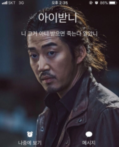 영화 '범죄도시'를 본 관객들은 윤계상의 사진으로 짤을 만들어 사용하고 있다. 한 누리꾼은 커뮤니티에 남자친구가 자신의 전화가 오면 배경화면에 윤계상이 연기한 장첸 사진을 뜨게 해놓고 “아이 받니?”라고 저장했다며 사진을 게재했다.
