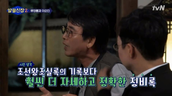 유시민은 류성룡이 노량해전 때 이순신의 죽음과 함께 관직을 버리고 낙향해 징비록을 썼던 일화도 알려줬다. 당시 엄청나게 많은 공문서를 가져온 걸로 보인다며 류성룡이 징비록을 집필하며 보인 열정도 말했다. 현재로 말하면 출처를 밝히는 부분이 무려 열권이 넘었던 것. 유시민은 임진왜란에 있어서만큼은 ‘징비록’이 ‘조선왕조실록’보다 더 자세하고 정확하게 서술되어 있다는 생각을 밝혔다.