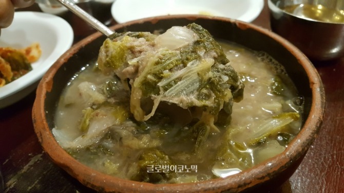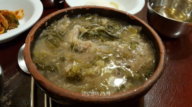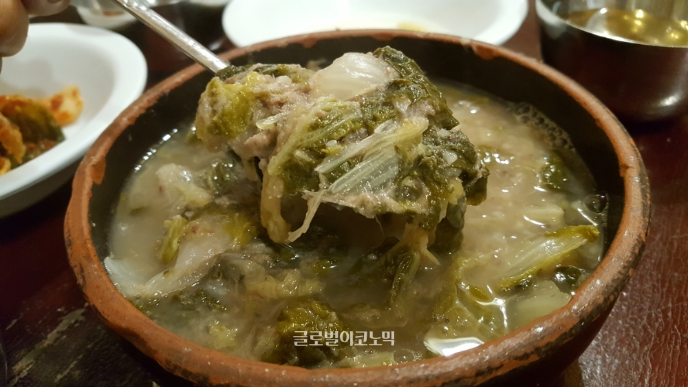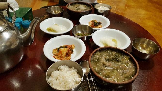 처음에는 미꾸라지 일까 싶었는데, 알고보니 배추였다. 이곳에서는 고랭지배추를 이용한다. 겨울에는 고랭지 배추를 구할 수 없다보니 다른 배추로 국을 끓이면 맛이 떨어진다고 한다. 그 이야기를 듣는 순간 이곳의 음식은 단순한 추어탕이 아니었다. 고집스러운 맛의 철학이 담겨져 있다는 생각이 들었다. 지금도 이곳에 가면 입구에 늘어놓은 배추를 볼 수 있다.
