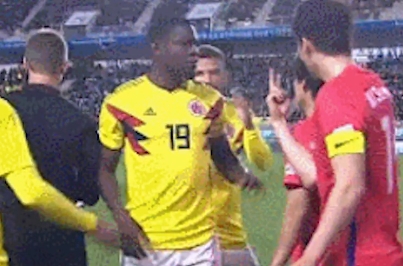 콜롬비아 축구대표팀의 공격형 미드필더 카르도나는 한국 대표팀 주장 기성용에게 경기 중 동양인을 비하하는 인종차별 행동인 눈찢기 동작을 펼쳐 논란이 되고 있다.