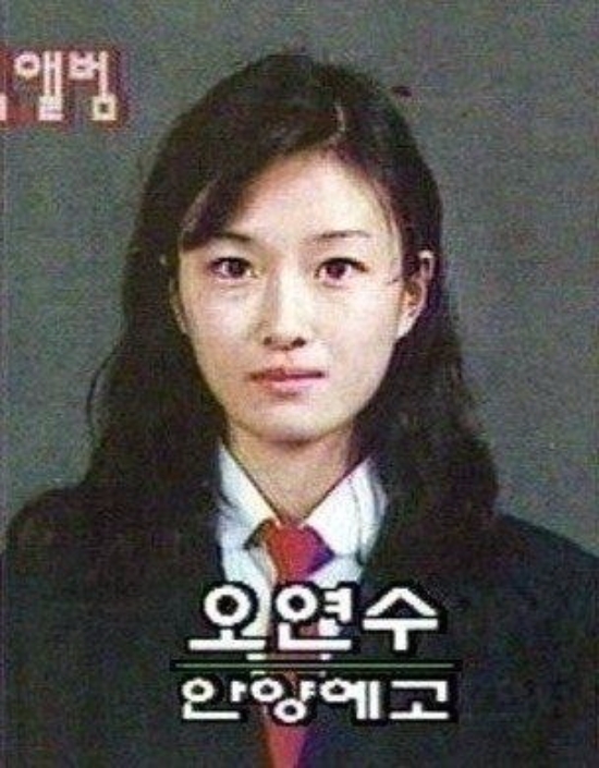 온라인커뮤니티에는 오연수의 안양예고 시절 졸업사진이 공개됐다. 사진 속 오연수는 똘망똘망한 눈망울에 갸름한 얼굴형, 완벽한 이목구비를 자랑하고 있다.
