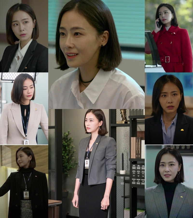 홍수현은 또 상황에 따라 심플한 초커나 레드 코트로 포인트를 준 스타일리시한 오피스룩을 선보였다. 게다가 한 듯 안 한 듯 자연스러운 피부 톤에 립만 강조한 '원 포인트 메이크업'으로 세련된 커리어우먼의 면모를 돋보이게 했다.
