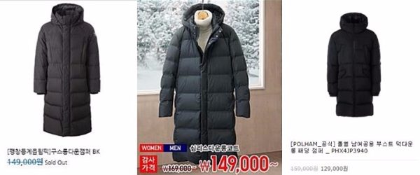 평창 롱패딩과 함께 유니클로 롱패딩도 인기를 끌었다. 유니클로는 지난 19일까지 감사제를 통해 여성용 롱패딩을 14만9000원, 남성용은 16만9000원에 팔았다. 감사제가 끝난 지금은 16만9000원과 19만9000원에 구할 수 있다.