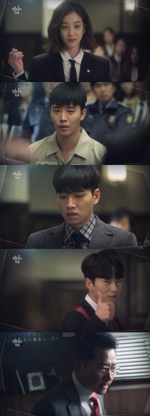 여진욱(운현민 분) 검사는 그런 마이듬 변호사에게 엄지를 번쩍 치켜들고 칭찬 신호를 보낸다.