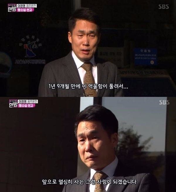 '한밤' 카메라가 담은 이창명은 무죄 판결에 만감이 교차하는 표정이었다. 이창명은 2년여 만에 억울함이 풀렸다고 말했다. 가장 생각나는 사람이 누구냐는 질문에는 "가족들"이라고 답했다. 이창명은 누구보다도 가족분들께 가장 죄송하다고 미안함을 표시했다.