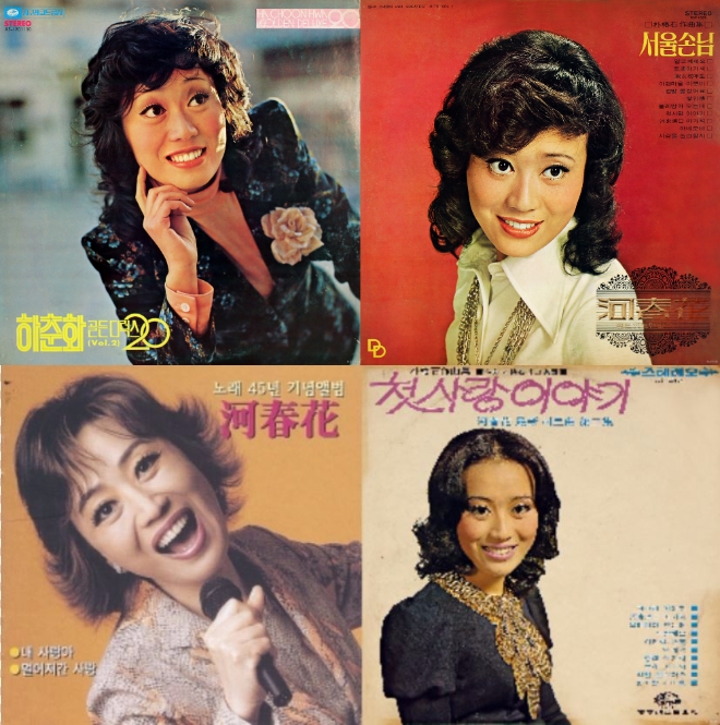 하춘화는 17세가 되던 1971년에 정규 1집 음반을 발표하면서 정식 가수로 공식적 데뷔했다. 이후 정규앨범 33장, 비정규앨범 16장, 참여앨범 70장 합이 119장의 앨범활동을 통해 가수의 역량을 펼쳤다. 가장 최근 앨범은 2015년 2월 2일 발매한 ‘하춘화(河春花) 노래 45년 기념앨범’이다.