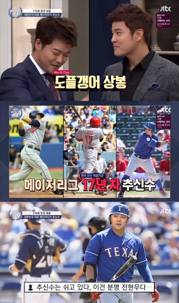 이미지 확대보기비정상회담에 추신수가 등장했다. MC 전현무는 메이저리거 추신수를 전현무 도플갱어라고 소개했다.