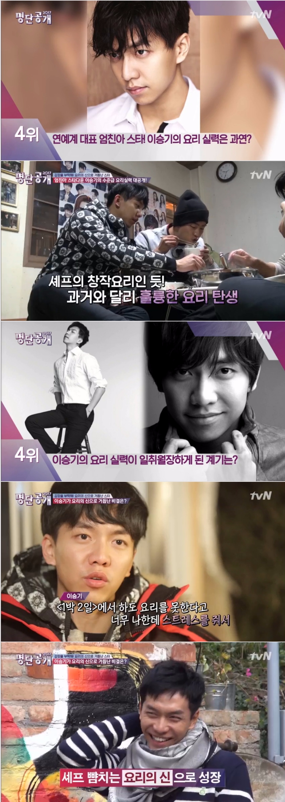 이날 이승기는 요리 콤플렉스를 노력으로 극복한 점으로 요리 잘하는 스타 4위에 등극했다.