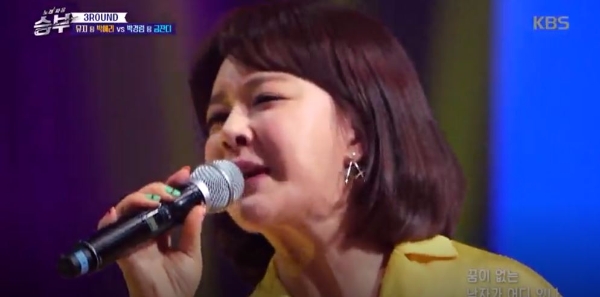 이미지 확대보기가수 금잔디가 28일 ‘불타는 청춘’ 방송에 출연해 화제를 모으는 가운데 지난 4월 그가 KBS <노래싸움 승부>에 출연했던 당시도 관심을 끌고 있다.