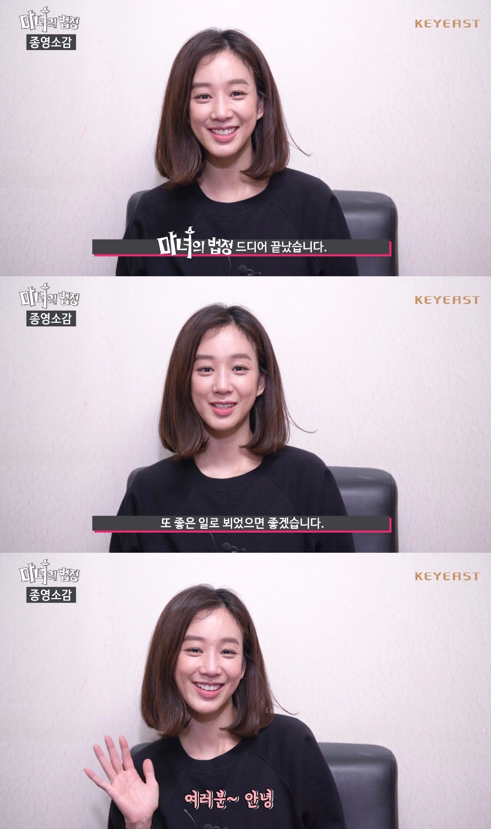 이미지 확대보기KBS 2TV 월화드라마 ‘마녀의 법정’에서 독종마녀 에이스 검사 마이듬 역으로 또 하나의 인생캐릭터를 만들어낸 정려원이 29일 키이스트 공식 SNS를 통해 “마녀의 법정이 드디어 끝났다. 또 좋은 일로 뵈었으면 좋겠다”며 소감을 건넸다.