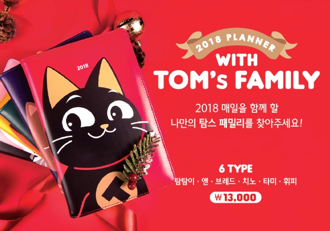 이미지 확대보기탐앤탐스는 공식 캐릭터 탐스 패밀리를 적용한 ‘2018 플래너’를 출시했다. 여섯 고양이 캐릭터에 맞춰 ▲커피연구가 ‘탐탐이’(레드) ▲프레즐 마니아 ‘브레드’(네이비) ▲식탐 대마왕 ‘휘피’(그린) ▲파워 블로거 ‘타미’(옐로우) ▲디자이너 ‘앤’(핑크) ▲커피 평론가 ‘치노’(블랙) 등 총 6종이다. 쿠션감 있는 커버를 사용해 그립감이 우수하다. 월간 주간 플랜, 유 무선 노트, 퍼스널로 구성해 실용성을 높였으며 속지 교체가 가능하도록 제작했다.