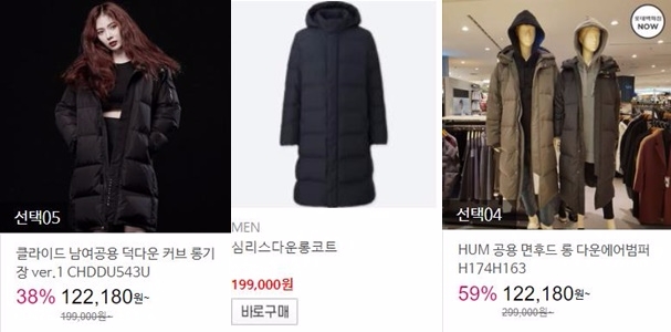 지난달 20일 슈퍼주니어가 쇼호스트로 나와 완판시킨 롱패딩을 판매한 CJ mall에서도 다양한 롱패딩 상품을 확인할 수 있다. 클라이드의 남녀공용 롱패딩은 12만2000원부터 판매되고 있다. HUM 롱패딩도 비슷한 가격에 판매되고 있다.