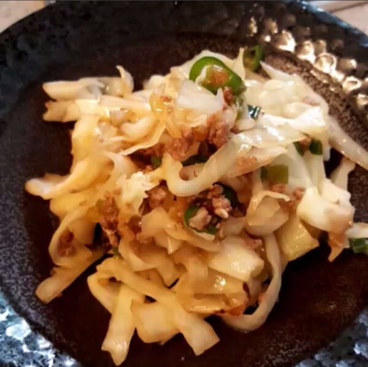 팬에 식용유두르고 파볶다가 썰어놓은 양배추 청양고추 그리고 만능간장 한국자 넣고 잘 볶아주면 끝”이다.
