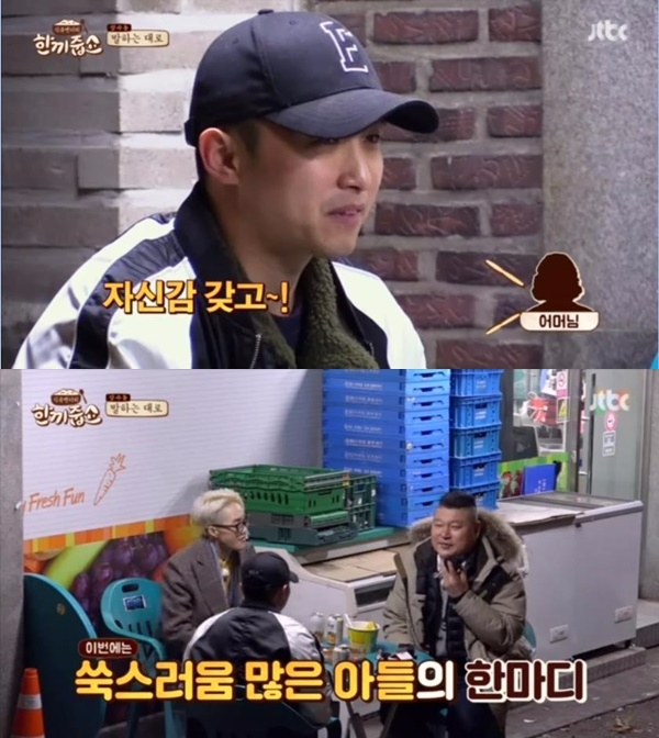 이미지 확대보기6일 방송된 JTBC ´한끼줍쇼´에서 강호동과 짝을 이룬 자이언티가 한끼를 얻어 먹는데 실패해 편의점에서 한끼를 얻어먹었다. 반쪽 성공을 거둔 ´한끼줍쇼´였지만 감동만큼은 꽉 찬 방송이었다.