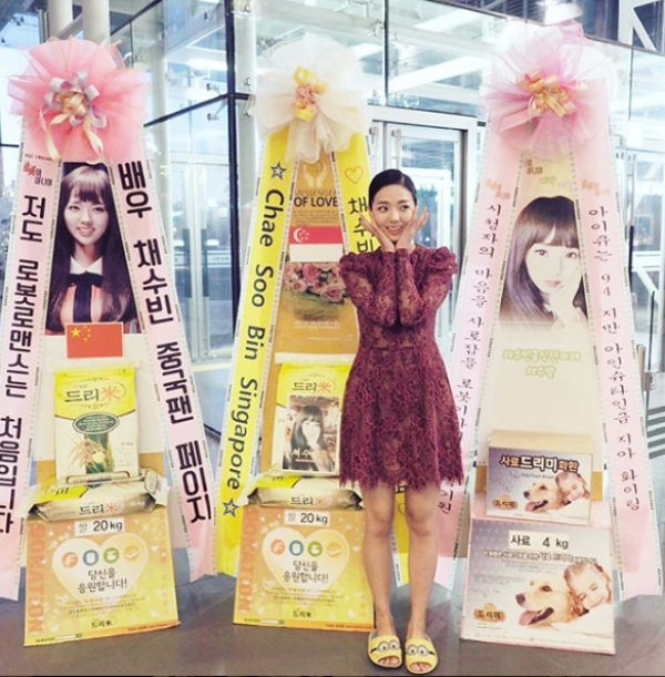 이미지 확대보기채수빈이 지난 6일 자신의 SNS에 한 장의 사진을 공개했다. 본인의 주연 작품 ‘로봇이 아니야’ 첫 방송 직전에 공개한 이 사진 속에서 채수빈은 팬들이 보내준 이색 화환을 뒤에 두고 밝게 웃는다.