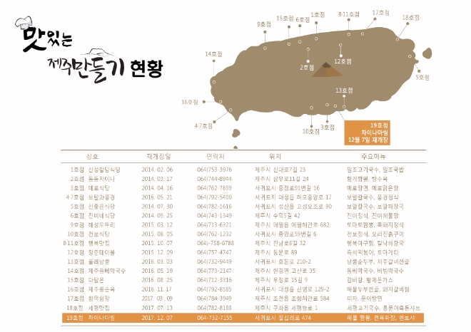 '맛있는 제주만들기' 19호점에 선정된 박보순(남, 57세) 씨는 중국집 ‘차이나마씸’(15평)을 2015년부터 운영해 왔으나, 전문적인 조리 방법을 배워 본 적이 전혀 없이 영업을 하고 있어 장사가 안 될 뿐 아니라 생활고까지 겪고 있었다.