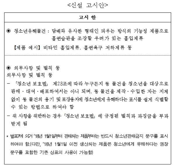 이에 따라 약국 등에서 이들 제품을 청소년에게 판매하면 2년 이하의 징역에 처하거나 2000만 원 이하의 벌금과 과징금을 물게 된다.