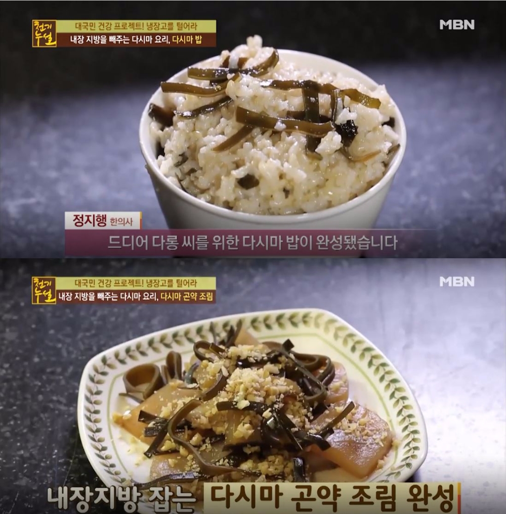이미지 확대보기‘천기누설’에서는 다시마에 풍부한 알긴산은 몸에 지방이 축적 되는 것을 막아주기 때문에 밥이나 반찬으로 활용해 꾸준히 섭취하면 내장 지방을 없애는 데 도움을 준다고 전했다.