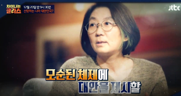 이미지 확대보기차이나는 클라스에 따르면 오는 20일 방송에는 조한혜정 교수가 강연자로 나설 예정이다. 올해 우리사회에서 발생한 각종 사건·사고·재난과 관련해 모순된 체제를 조명하고 대안을 모색하는 시간을 갖는다.
