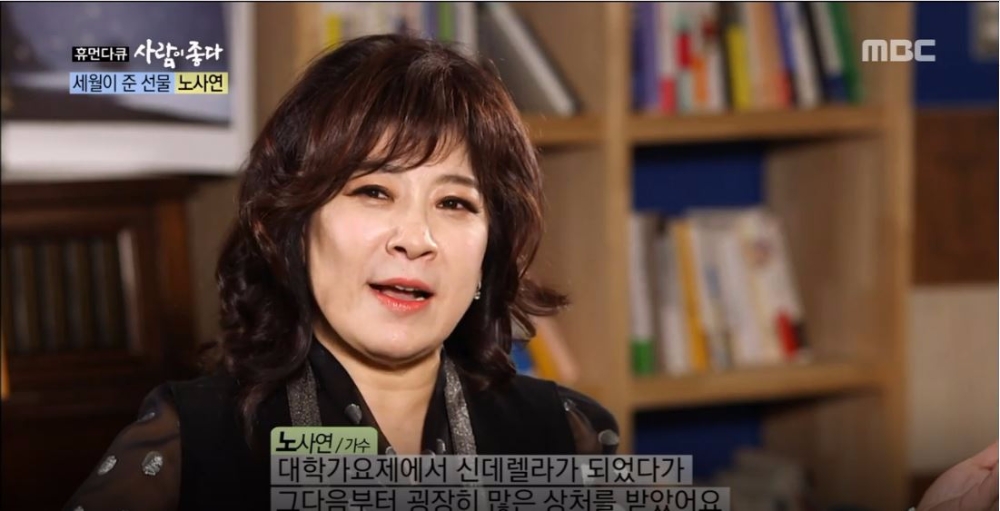 ‘휴먼다큐 사람이 좋다’ 방송안내에 따르면 “노사연은 1978년 제 2회 MBC 대학가요제로 화려한 데뷔를 치르며 신데렐라로 떠올랐지만 뛰어난 외모의 가수들이 각광 받던 시대, 그녀는 상처를 받고 고심 끝에 메이저가 아닌 언더그라운드에서의 활동을 펼치게 된다. 1986년 1집 ‘님 그림자’를 발표하며 재기 아닌 재기를 하며 깊이 있는 색깔을 가진 음악으로 주목을 받는다. 또한 노래 뿐 아니라 당시 최고의 인기를 누리던 MBC ‘일요일일요일 밤에’의 엠씨로 활약하며 본격적으로 대중들에게 자신의 이름을 알렸다.