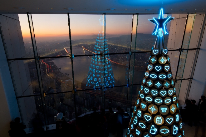 롯데월드타워 전망대 서울스카이가 연말연시 풍성한 이벤트를 마련했다. 크리스마스 이브인 24일(일)에는 기존보다 1시간 연장 운영해 밤 12시에 폐장한다. 크리스마스를 지상 500m 높이에서 여유롭고 낭만적으로 시작할 수 있다. 성탄절을 맞아 121층에 6m 높이의 대형 미디어트리가 설치돼 서울스카이를 반짝반짝 밝힌다. 세계에서 가장 높은 곳에 설치된 트리 안에서 뿜어져 나오는 색색의 LED 조명은 크리스마스를 더욱 신비롭게 만든다. 31에는 새해를 기념하는 화려한 카운트다운 영상과 이벤트가 펼쳐진다. 밤 11시부터 익일 1시까지 한복을 입은 서울스카이 캐릭터들의 새해맞이 애니메이션 영상은 물론 고급 샴페인을 마시며 우아하게 새해를 맞이할 수 있는 기회다. 성인은 샴페인, 서울스카이 캐릭터 인형 포함 7만원, 초등학생 이하 어린이는 음료와 캐릭터 인형 포함 5만원에 입장 가능하다. 온라인 사전 예약으로만 진행되는 1월 1일(월) 스페셜 해돋이 이벤트도 소개한다. 기존 전망대 운영 시간보다 3시간 이른 새벽 6시 30분에 입장해 아름다운 새해 일출을 만끽할 수 있다. 1년에 단 한번 누릴 수 있는 특별 프로모션으로 ‘123F 관람 패키지’와 ‘일출 관람 패키지’ 중 선택하면 된다.