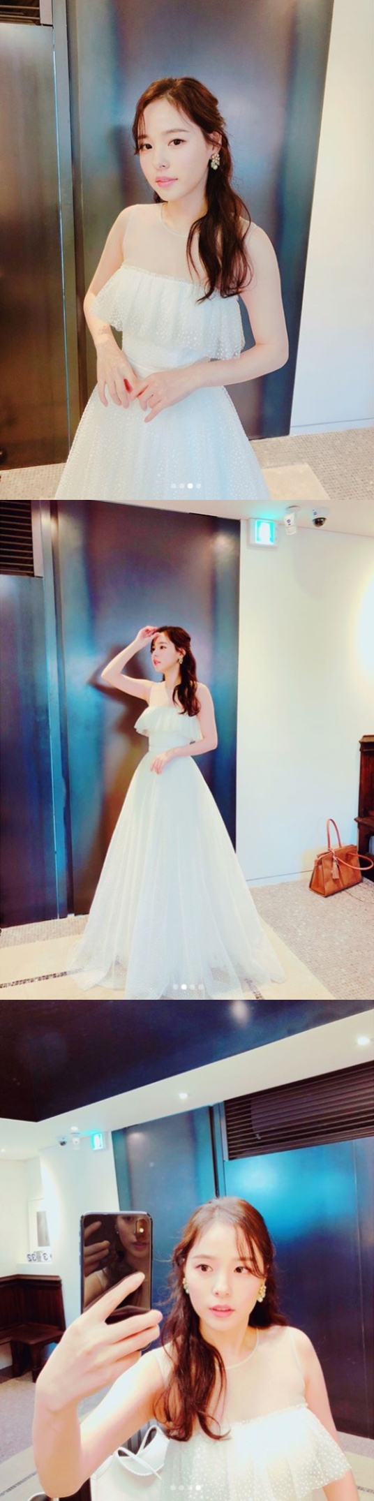 공개된 사진 속의 민효린은 면사포를 쓰지 않은 채 굵은 웨이브의 긴머리에 가슴선을 강조한 드레스를 입고 카메라를 응시하거나 셀카를 찍는 포즈를 취하고 있다. 특히 민효린은 초절정 동안 미모로 시선을 사로잡고 있다.