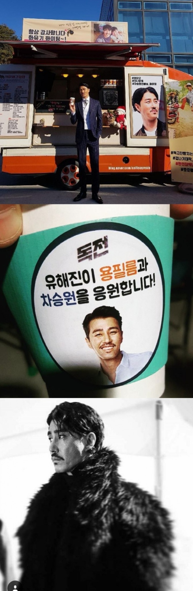 이미지 확대보기차승원은 최근 자신의 인스타그램을 통해 인기리에 종영한 '고백부부' 손호준과 오는 2018년 개봉예정인 영화 '독전'에 출연하는 유해진의 커피차 응원 인증샷을 게재해 남다른 우정을 과시했다.