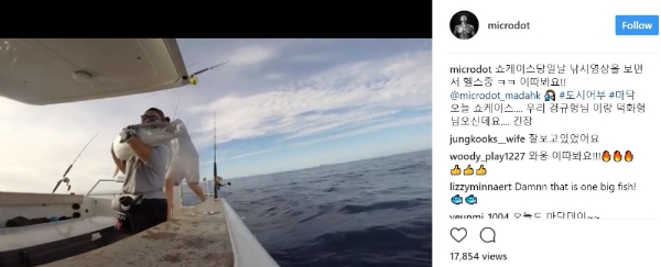 이미지 확대보기지난 17일 마이크로닷은 자신의 SNS에 한 편의 동영상과 글을 게재했다. 동영상은 어느 외국인들의 낚시 영상으로 대어가 낚이는 모습을 담고 있다.