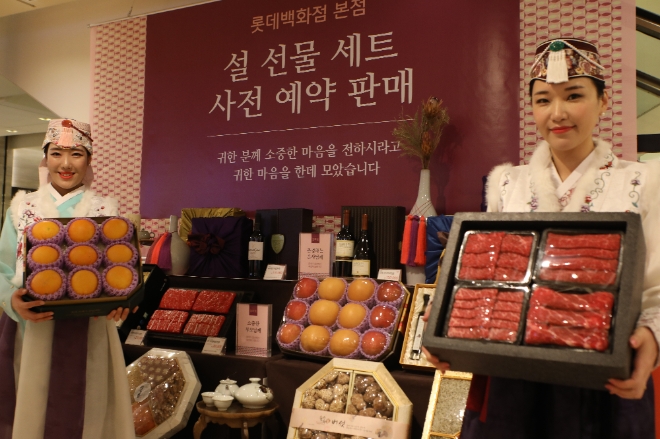 롯데백화점은 본점, 잠실점, 부산본점 등 33개 점포에서 12월27일부터 1월 21일까지 26일 간 설 선물세트 사전 예약판매를 진행한다. 이번 사전 예약판매 행사에서는 지난해보다 10여 품목이 늘어난 210여 개 품목을 최대 70% 할인 판매할 예정이다.