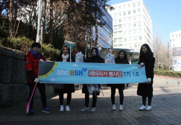 bhc치킨의 ‘bhc 해바라기 봉사단’이 연말 봉사를 통해 이웃들에게 따뜻한 나눔을 실천했다. ‘해바라기 봉사단’ 1기 1조는 지난 17일 홍제천과 명지대학교 인근 지역을 찾아 환경미화 봉사 활동을 펼쳤다. 많은 유동 인구로 인해 크고 작은 쓰레기가 많은 생활 하천과 대학가 골목을 청소하며, 깨끗한 거리 조성에 앞장섰다.