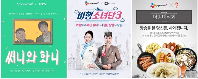 이어 CJ오쇼핑은 지난해 9월 패션, 뷰티 방송 ‘오구실’을, 10월에는 뷰티 체험 프로그램인 ‘TV올리브영’ 방송을 시작했다. 또한 지난해 12월부터는 더빙전문 유투버와 함께 음식 정보를 제공하는 푸드 토크쇼 ‘더빙미식회’, 리얼 예능 쇼큐멘터리 형식으로 제품을 이용해 하루치 목표를 달성하는 과정을 그린 ‘써니와 화니’, 전직 스튜어디스들의 패션, 뷰티 노하우를 담은 ‘비행소녀단’ 등 총 4개 프로그램을 추가 운영 중이다.
