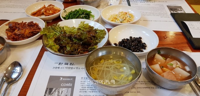 소박해 보이는 밑반찬은 간이 잘 맞았다. 텁텁한 입안을 깨끗하게 해주는 시원한 콩나물국과 진한 맛이 나는 나박김치는 청량제 역활을 했다. 이 두 가지는 평범해 보이지만 비빔밥의 맛을 한층 끌어올리는 중요한 역활을 한다. 단팥죽에 찍어 먹는 찐빵처럼 한결 맛을 살려준다.