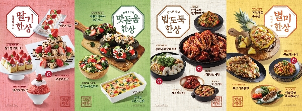 이미지 확대보기이번 신메뉴 ‘맛어울림 한상차림’은 식전 입맛을 돋워주는 한식 브런치 ‘맛돋움 한상’, 눈 깜짝할 새, 밥 한 그릇 뚝딱할 수 있는 ‘밥도둑 한상’, 퓨전 한식으로 풀어낸 이국적인 메뉴 ‘별미 한상’, 달콤한 제철 딸기 메뉴를 선보이는 ‘딸기 한상’ 등 다양한 콘셉트의 한상 메뉴를 한번에 즐길 수 있도록 샐러드바를 구성했다.